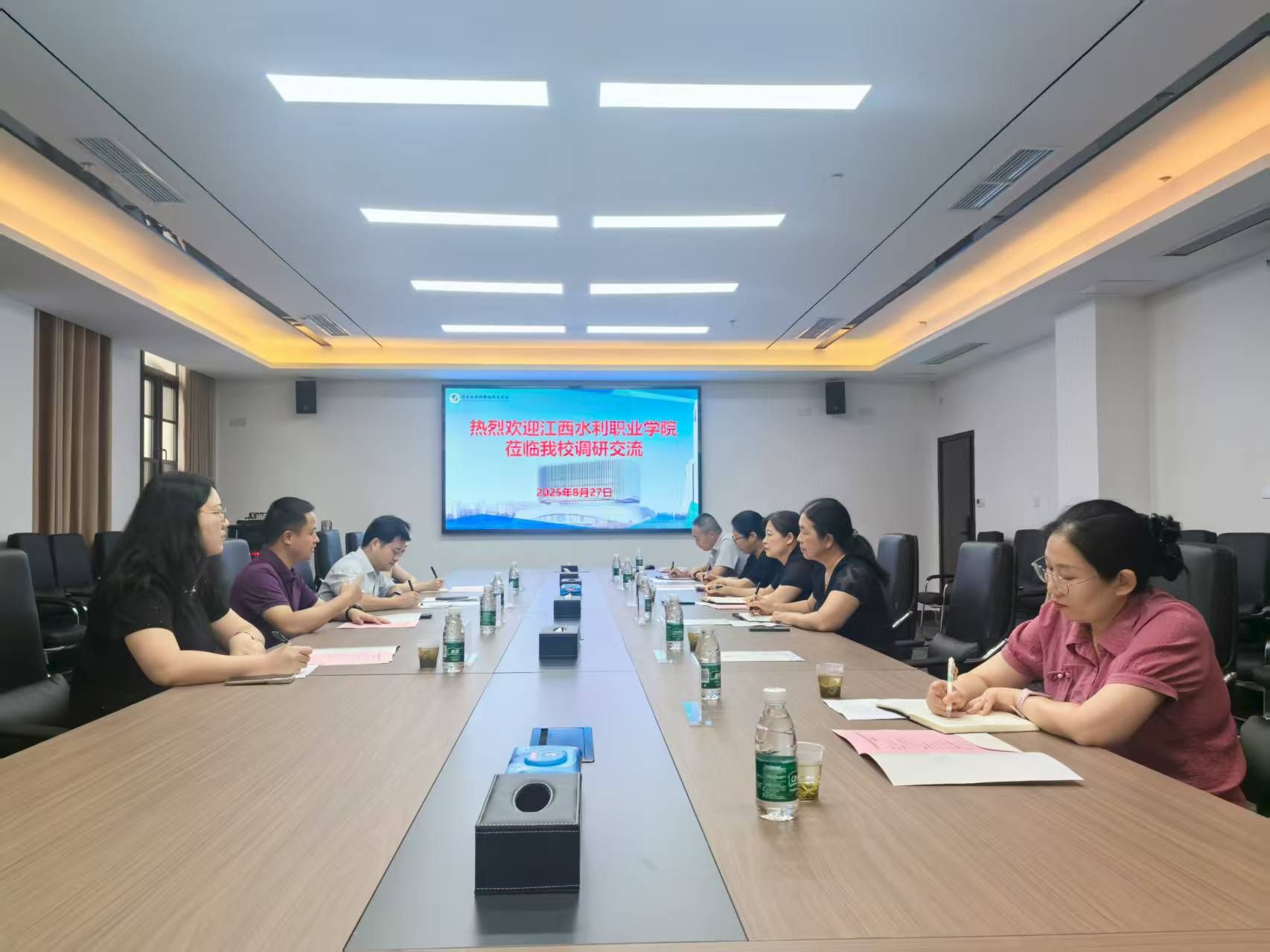 8月27日上午,江西水利职业学院党委书记谢彪、副校长饶奇磊率4人团队到访我校,开展调研交流。我校校长李志萍、副校长张竟超,及党政办公室、教务处、招生就业处、水利工程学院等部门负责人热情接待并参与座谈。