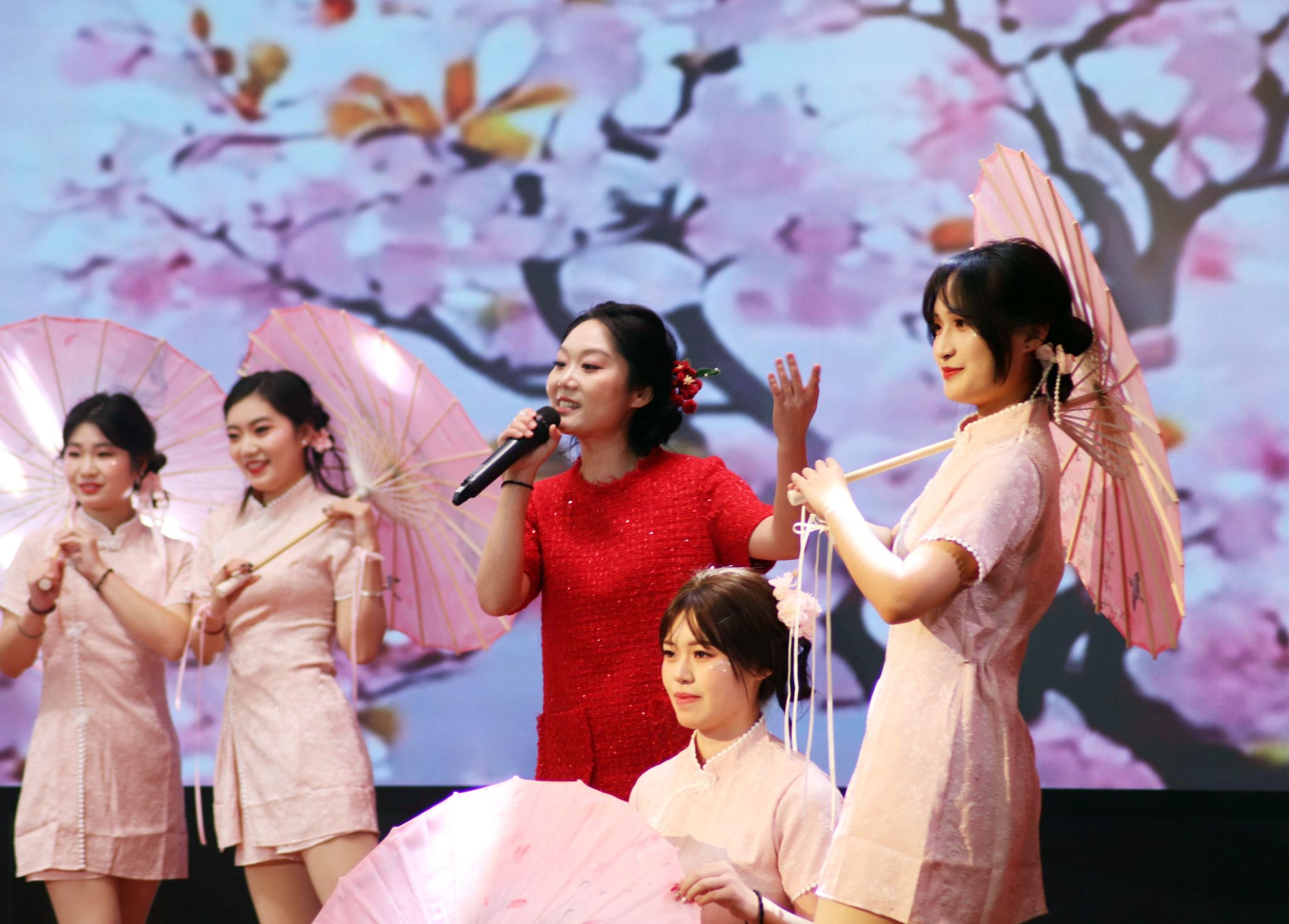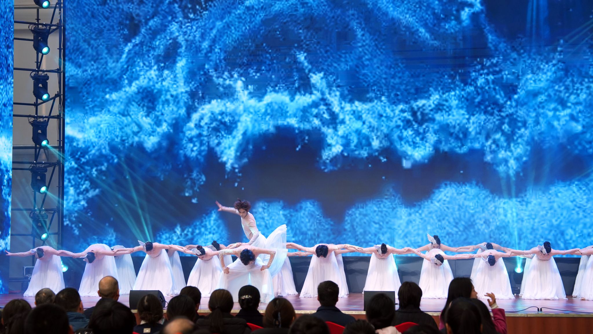 联欢会在歌伴舞《水润华章》的悠扬旋律中惊艳开场。舞者轻盈的舞姿与歌手真挚的演唱完美融合,瞬间点燃全场热情,将氛围带入活力满满的迎新时刻。