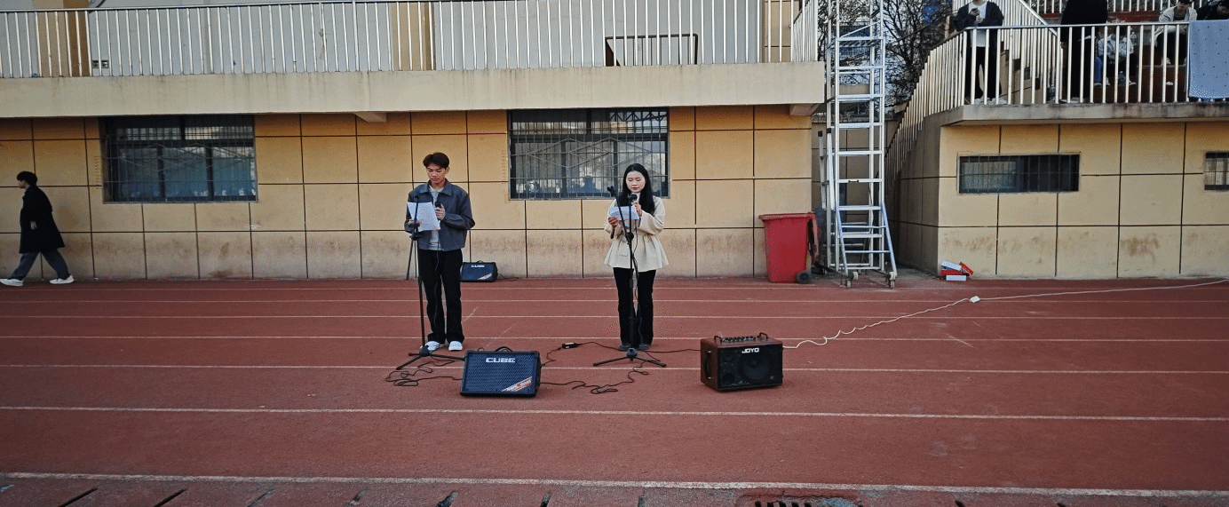 11月15日下午15点30分,第二场汇报演出在学校的操场上正式拉开帷幕。整场演出由合唱团和音乐社的各位同学呈现。微风正好,秋日暖阳下,校园音乐爱好者齐聚绿茵场,在旋律与欢笑中开启一场青春艺术盛宴。演出伊始,郭意恒以独唱《你还要我怎样》的细腻声线点燃现场,田紫涵随后带来《第57次取消发送》,温柔唱腔里的青涩情绪引发全场轻和;高祯康演绎的《孤独患者》则以低沉质感传递共鸣,将氛围推向第一个高潮。合唱节目同样亮点迭出:田紫涵与高祯康搭档的《只对你有感觉》甜度满格,尹晨斌、魏珂合作的《天后》以默契和声展现舞台张力;刘豫州的《嚣张》、张星浩的《这条小鱼在乎》以鲜明个人风格收获掌声,王锦运带来的《瞬》则用清澈嗓音定格秋日温柔时刻。压轴环节,多元风格的表演在观众的荧光棒与欢呼中落下帷幕。