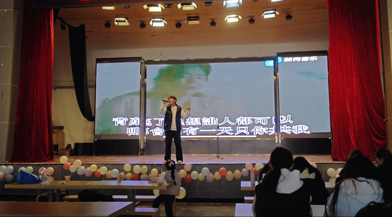11月14日晚18点30分,第一场汇报演出在南苑餐厅大舞台正式拉开帷幕。首先登场的是我校器乐班的乐队带来的《红色高跟鞋》,清甜的女声主唱动人心弦,乐队的伴奏完美无瑕,带动了第一波欢呼浪潮,副歌部分更是有许多台下观众的一起合唱,在场的氛围在这即将入冬的天气显得格外温馨、温暖。紧接着合唱团成员王锦运和王泽钤的独唱歌曲《我只能离开》和《如果呢》又将大家拉入另一种抒情的氛围当中,清亮嗓音穿透暮色,引得台下观众一阵呼喊,随着音乐的节奏挥舞着手臂,将青春的活力完美的呈现了出来。剧目表演班的众人带来了由秦末汉初的《鸿门宴》改编的剧目表演用欢快的语调而表达出历史的残酷,逗得观众一阵哈哈又让观众了解到了历史的残酷。由语言班带来的朗诵《青春杨帆正当时,争做时代追梦人》和《血色长河·星辰不灭》声音铿锵有力,情感真挚饱满,引发了现场观众的强烈共鸣。舞蹈类节目《与你同行》由舞蹈班的杨曜华独自演绎,舞者以优美的舞姿、流畅的动作,将舞蹈的情感与意境完美呈现,肢体语言富有感染力,为观众带来了一场视觉享受,展现了舞蹈艺术的独特魅力。白明博的《海阔天空》、陈子豪的《程爱影》、耿旺辉的《皮囊》、张政员的《江南》,合唱团的几人用独特的嗓音诠释了不同风格的歌曲,或深情婉转,或激昂高亢,或温柔治愈,将每首歌的情感内核展现得淋漓尽致,让观众沉浸在音乐的世界中。此外,器乐班的吉他组演绎的《平凡之路》,以清新的吉他旋律搭配默契的和声,演绎出对平凡生活的热爱与对梦想的执着追求,令人印象深刻。合唱团的合唱节目一样亮点十足,分别是徐皓与杜宜桐带来的《素颜》和王晓帆、刘海博等八位成员带来的《你从未离去》他们用轻快悦耳的歌声配合默契的合唱为大舞台的第一场汇报演出拉下了帷幕。