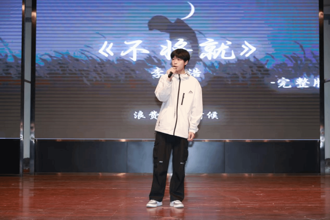 随后的独唱环节,更是各有千秋。耿旺辉的《寂寞先生》用细腻而富有张力的嗓音,将孤独与挣扎唱得淋漓尽致,每一个高音都牵动着听众的心绪;张星浩的《东北民谣》带着质朴的烟火气,用明快的节奏和亲切的唱腔,把故乡的故事娓娓道来,让人忍不住跟着轻轻哼唱;陈子豪的《不将就》唱出了年轻人对爱情的倔强与坚守,张政员的《晴》、郭意恒的《倒带》也各有韵味,或温柔缱绻,或深情怅惘,让我们在不同的歌声里,听见了青春多样的情绪。
